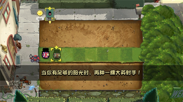 2、直接放入草坪中就可以进行攻击了,为了阻挡波兰球的攻击需要继续种植大英射手;