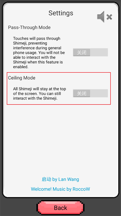 4、最后,会看到具体的模式选择,点击第二个开关,即可开启【天花板模式】,这样小球球只会在顶端活动啦。