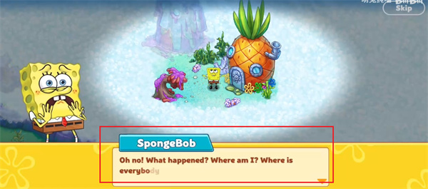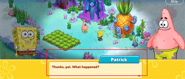 4、上一步的物品解锁后,派大星将会出现,可以和派大星进行对话,点击对话框即可;