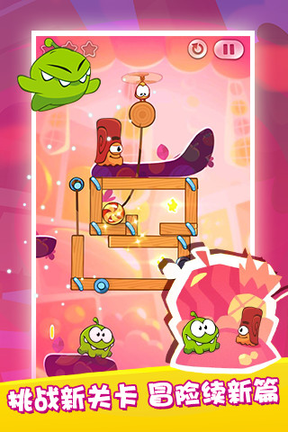 经典益智大作再续新冒险:一路上与新结识的7位各具神通的爆萌小伙伴展开合作,帮助小吃货完成各种刺激挑战!寻找四叶草,开启隐藏关,完成任务拿奖牌、为小吃货精心打扮!一起开动脑筋,圆满Om Nom的糖果梦吧!