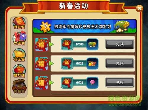 参与各类活动,可以获得“春节专属碎片”是用碎片可以兑换各类植物、植物碎片、装扮、装扮碎片等丰富的奖励。终极兑换奖励为橙色植物。
