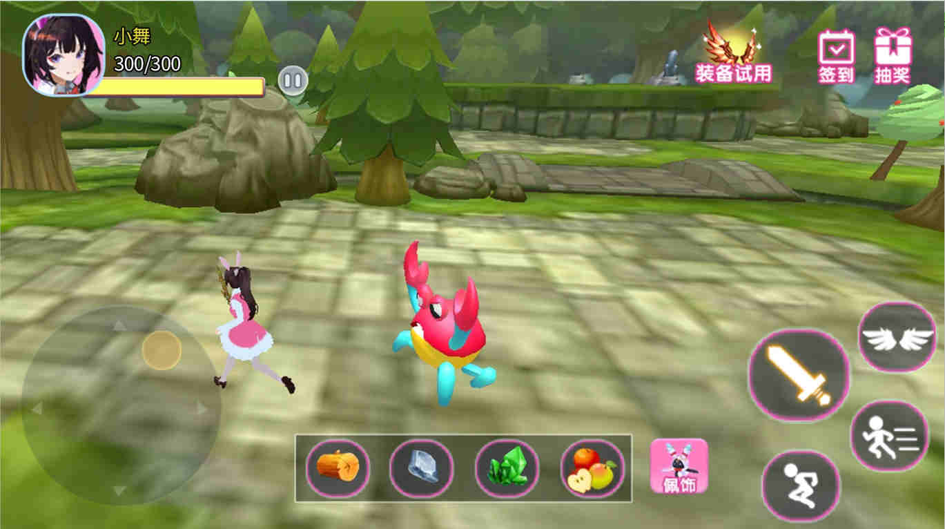 1、就像跑酷那样的游玩模式,一直向前寻找宝物,获得游戏的资源。
