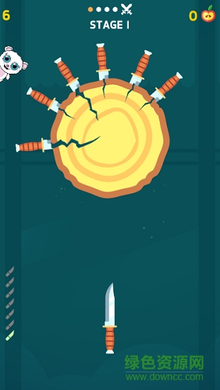 在恰当的时候来射击飞刀,注意不要射击重复,往后的关卡射击目标会动,所以需要预判射击,不断旋转的木板,不要被它转晕头,观察它的旋转速度,提前出刀才能精准切到目标。不要击中已经插在木板上的刀柄了,会直接游戏结束。用完所有飞刀击碎木板过关如果飞刀射出时机正确,木板会减速甚至停止旋转。