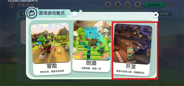 3、模式中可以选择【开发】就可以进入到开发模式之中;