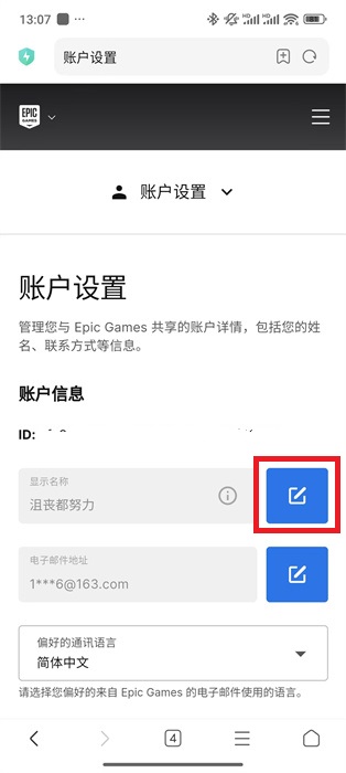 8、在账户界面点击名字后面的【蓝色】按钮,就可以去进行更改ID。