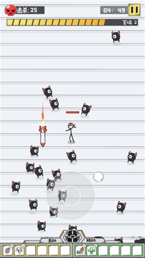 1、纸攻简洁顺畅的运作方式,需要玩家灵活机动,出手自如,玩家也可通过提升天赋、装备等途径,增强火柴人生存能力。
