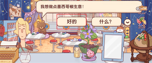 1、进入到游戏的场景内之后,玩家将需要进行顾客订单的接单,接单后可以点击屏幕上的【好的】按钮;