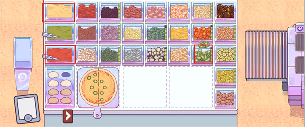 3、揉制好面团之后,玩家需要按照顾客的需求来进行配菜的放置;