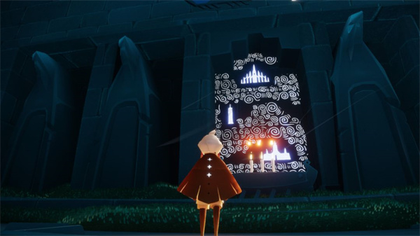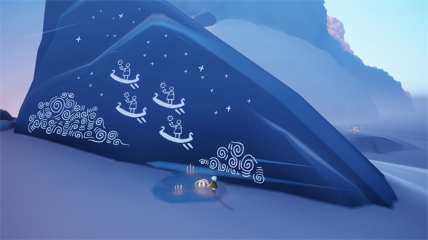 2、来到游戏指引的洞中,这里可以看都很多图案,讲述了很多光遇的故事,了解光遇剧情;