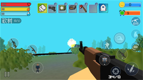 3、玩家要在这个小岛上生存下去,击杀僵尸以及多种危险生物,同时还要采集多种资源。