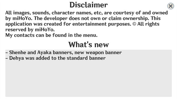 1、下载完成原神开箱模拟器之后,点击打开,进入到软件的主界面之中,会有一个提示页面,我们只需要点击右上角的【x】点击关闭就可以进入到开箱界面;