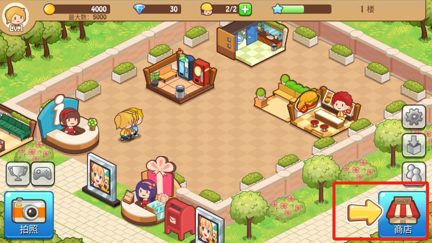 1、我们需要先经营好自己的店面,通过商店增加自己售卖的商品店面;