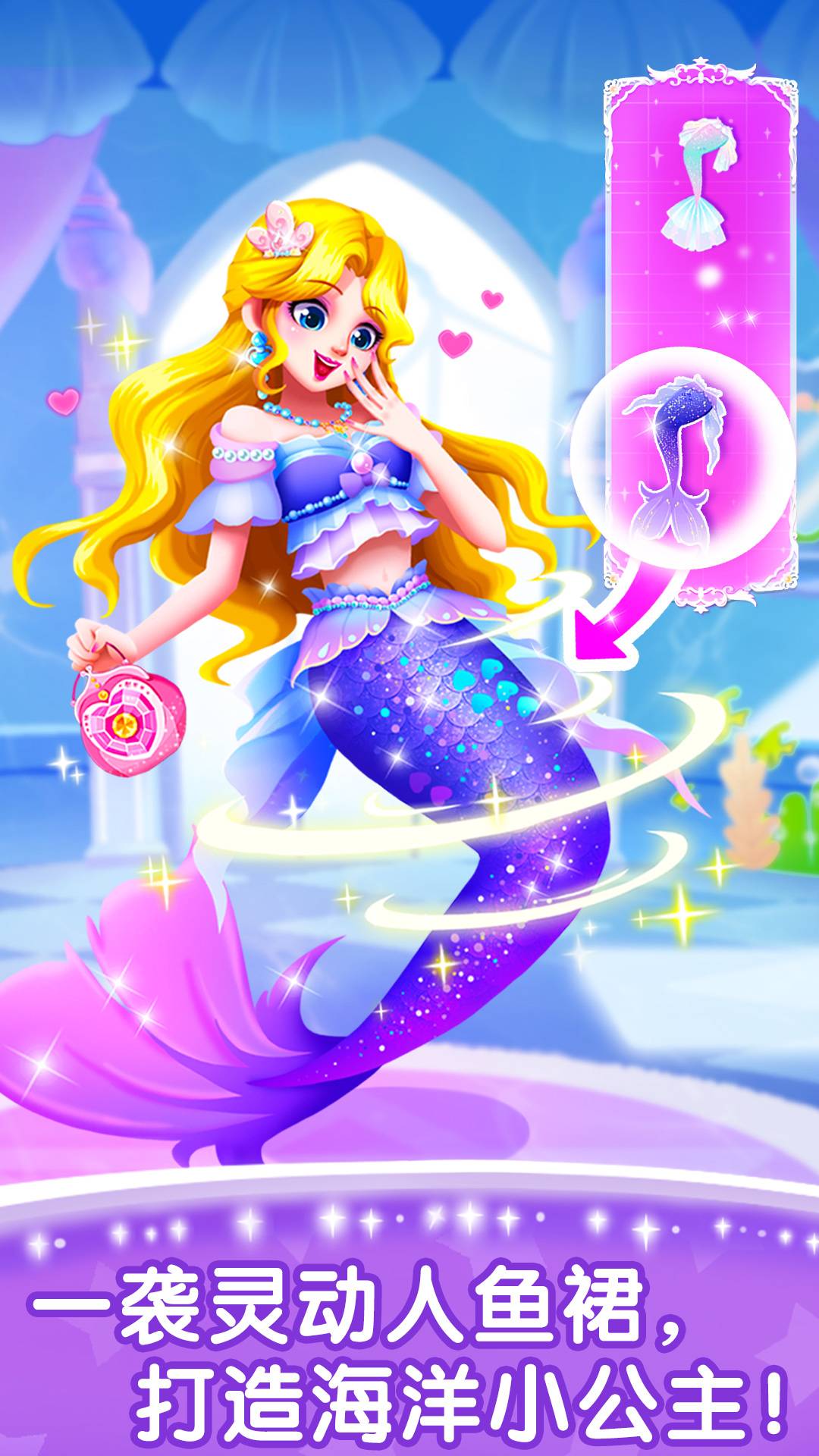 4、触摸点击选择衣服、耳环、头饰等,可以改变人鱼公主的装扮