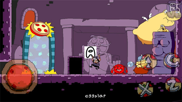 3、需要控制一个小人完成各种不同的跳跃以及闯关动作,并避开披萨攻击;