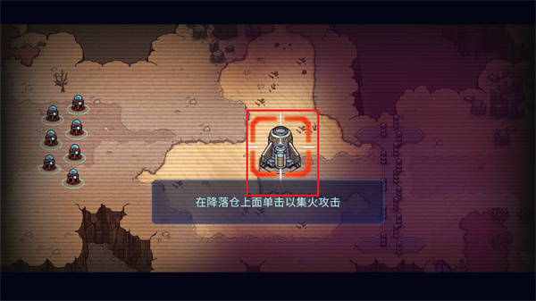 3、此时将会出现一个降落仓,点击该降落仓,让小兵们快速的对该降落仓进行攻击;