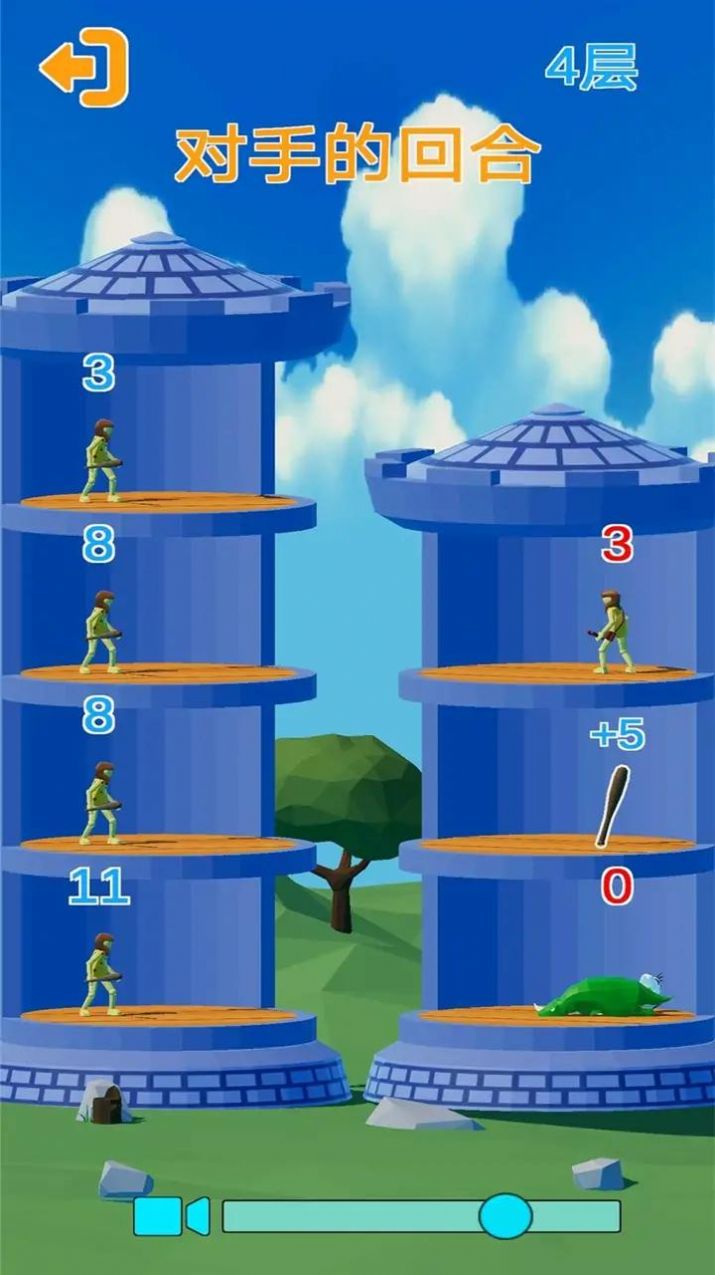 一款很好玩的娱乐益智的游戏,游戏的关卡很多,不同的关卡内容都是不一样的,合理的运用各种道具来游玩,击败敌人可以获得他的战斗力,使用多种不同的策略来游玩,可以享受不同的快乐,成功的击败塔里的所有人,获得胜利。