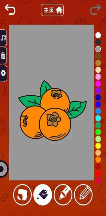 2、发挥你的想象力,给这些水果上色,关卡中有不同的水果,你不能停止游玩;