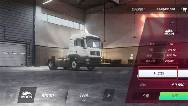 1、可以自由的进行卡车皮肤的定制,点击屏幕右侧的【定制】按钮即可;