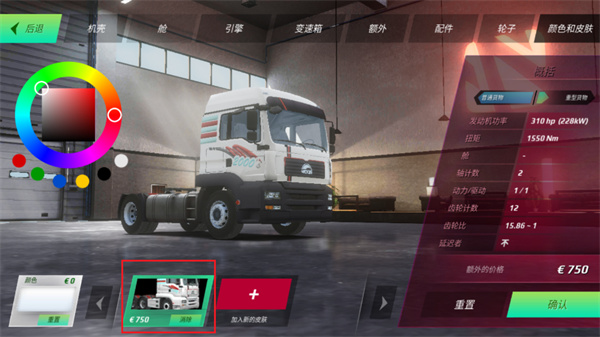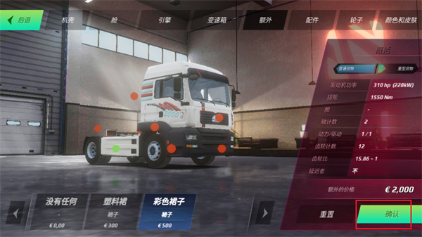 7、一切都选择好之后,玩家将可以点击屏幕右下角的【确认】按钮来进行卡车外观的确认。