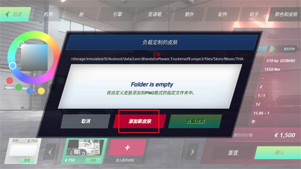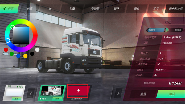 4、也可以点击屏幕下方的红色加号小按钮,以进行其他卡车皮肤的导入;