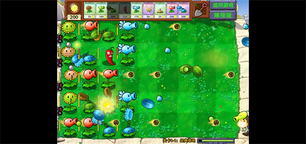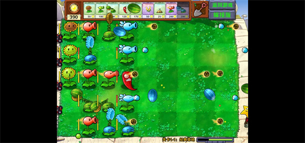 3、进入到游戏中之后就可以正常的体验游戏,放置不同的植物在不同的位置;