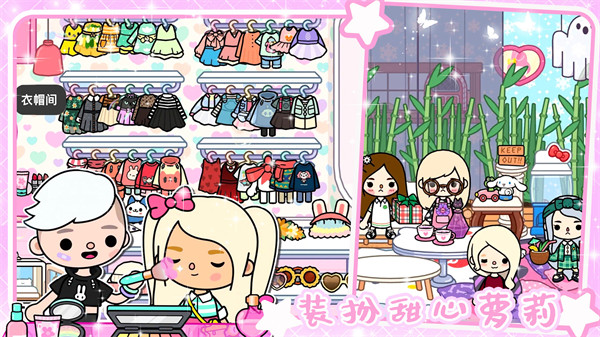 托卡小镇三丽鸥房子手游是一款模拟生活向游戏,玩家需要在游戏中尽情的展现自己的想象力,搭建自己的房子,在美食小屋制作美食,在购物广场购买各种各样的喜欢的物品,玩家还可以自由自在的为自己装扮,穿自己喜欢的衣服。