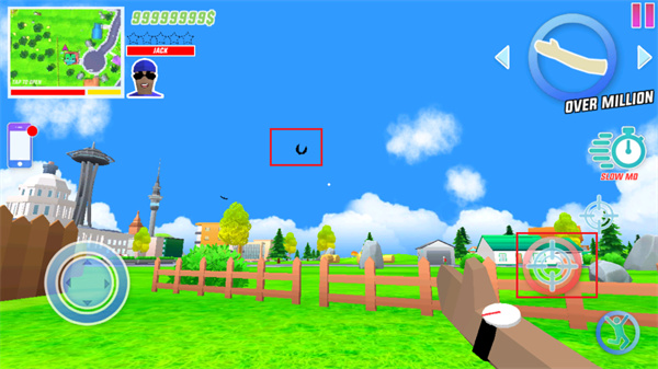4、而屏幕右下角的圆形按钮则是射击按钮,可以通过点击该按钮来进行场景内人物或者是动物的攻击。