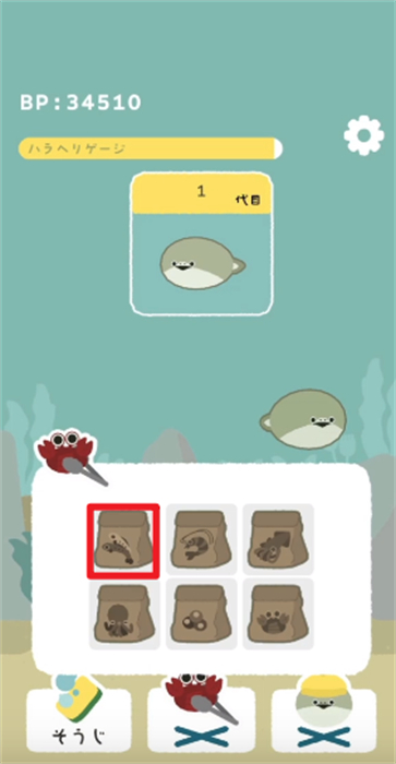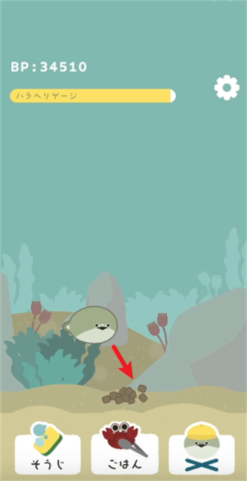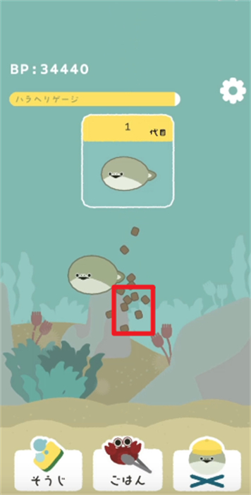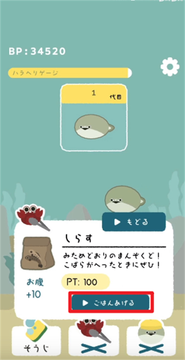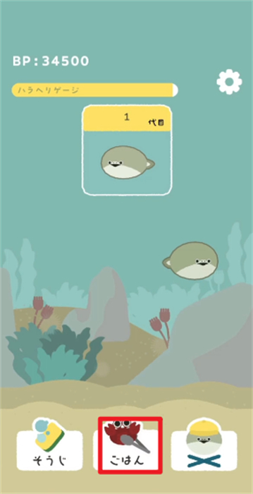 1、进入到游戏的场景内之后,玩家可以点击喂食的按钮,以进行小鱼的饲养;