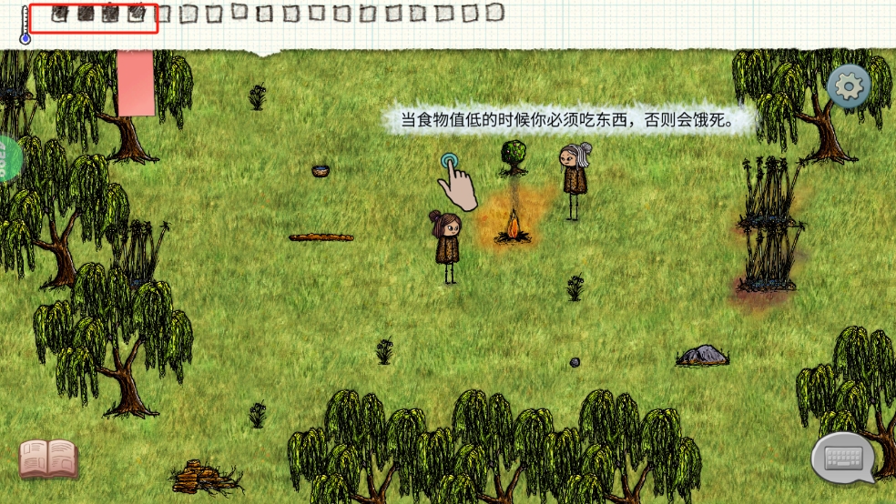 2、注意这个游戏会根据时间和运动量造成饱腹度降低,如果饱腹度降低到剩下四个格子就会嘎了;