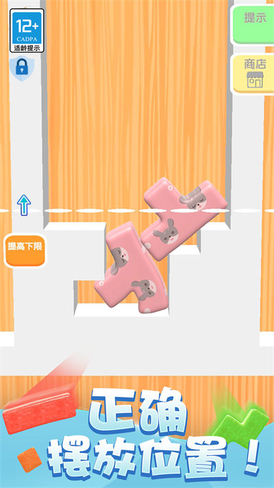 1、注意上方的标准线,玩家拼合好的积木必须要在标准线之下才算通关成功,如果超过标准线,则游戏失败;