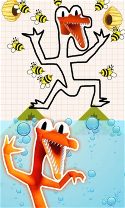 游戏中玩家需要拯救正在受蜜蜂侵害的彩虹朋友,关卡内还会有陷阱,只需要利用我们的小手来画几道线保护彩虹朋友,十秒后蜜蜂攻击不到彩虹朋友就会回到蜂巢,这样我们就成功了。