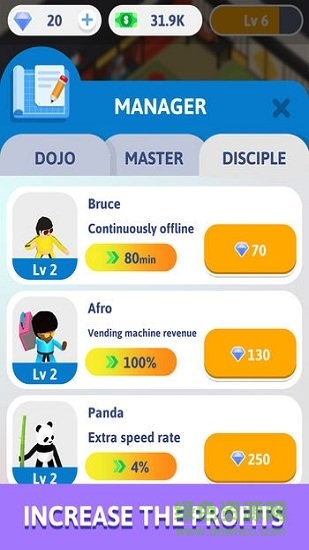 想不想练绝世武功这款游戏是非常热门的模拟经营类型手游,在这款游戏中你的目的就是将中国的武术发扬光大,让更多的人知道武术的厉害和博大精深,你将成为武道馆馆长,吸引众多顾客来馆中学习武术,感兴趣的话快来下载体验吧!