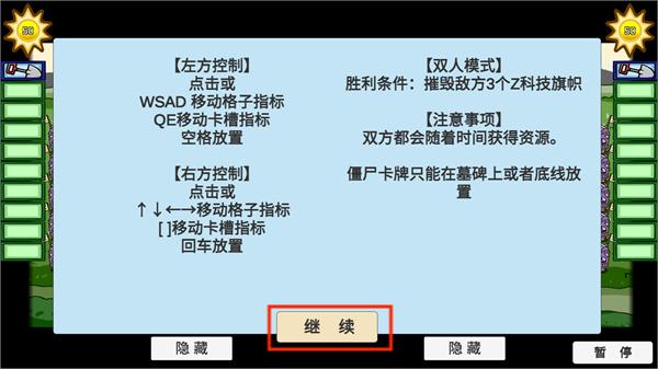 2、阅读有关双人模式的胜利条件、注意事项以及控制方式,点击继续;