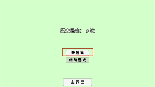 2、接着进入将会看到自己的历史最高波数,新玩家直接选择新游戏进行挑战吧;