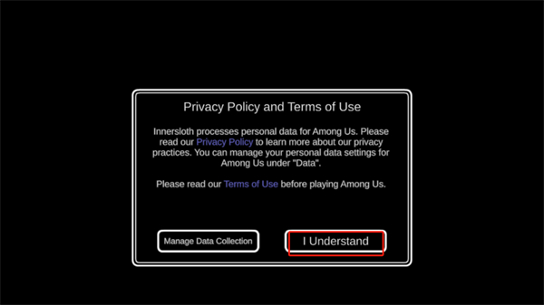 1、进入到游戏的场景内之后,将会出现一个隐私条例的同意弹窗,玩家需要点击屏幕下方的红框框内按钮;