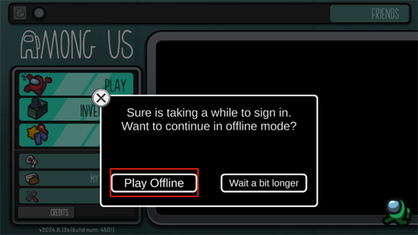 2、此时玩家将会进入到游戏开始的主界面之中,会出现另外一个弹窗,可以点击【play offline】按钮;