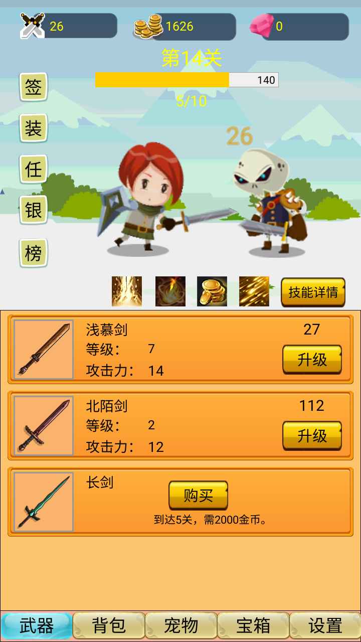 挂机勇者大冒险是一款休闲的游戏,玩家选择角色进行冒险,敌人的数量很多,玩家需要击败敌人获取经验慢慢 的提升自己的实力,有很多的武器可以使用,增加自己的战斗力,更好的消灭更多的敌人,快来游戏里体验下。