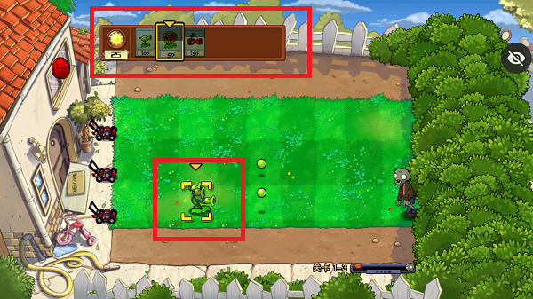 2、点击开始之后第一关上手就是随机植物的内容,所以如果看到你种植的向日葵变成了豌豆射手也不要惊慌;