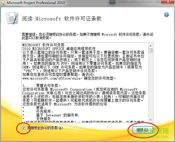 2.勾选“我接受此协议的条款”,然后点击“继续”按钮
