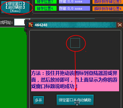 3.拖动扫描句柄插件扫描锁定登陆器绑定窗口后再启动辅助。