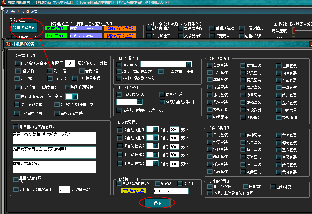 雷霆之怒天狼辅助是一款完全免费的《雷霆之怒》游戏辅助工具。软件可以让玩家释放双手,更轻松的游戏。通过软件可以全自动挂机,那你升级、赚钱不那么累。赶快下载体验吧!