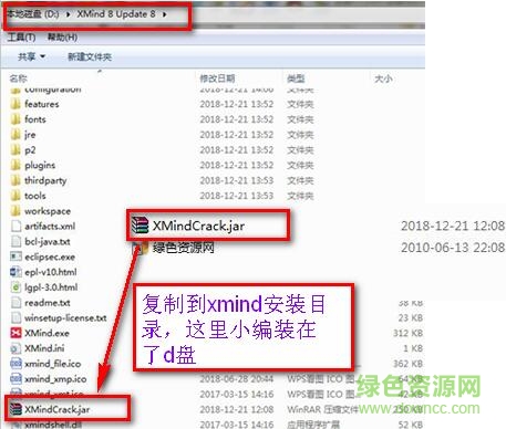 2.打开“xmind正式补丁”文件夹,将里面的“XMindCrack.jar”复制到xmind安装目录(这一步必须正确,不然会正式失败的,切记)