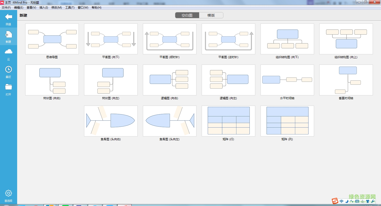 1、进入XMind后,首先看到的是新建模板界面,这里可以挑选从某个模版开始,或者某种风格的空白图开始。个人建议,新手的小伙伴最好先从使用空白的模版开始,这样不至于忽略思维导图本身的作用。