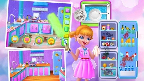 家庭打扫助手是一款休闲益智的家庭游戏,在游戏里面玩家需要扮演一个小女孩,自己放假在家中然后爸妈出去上班了,然后你想着在家里面做点卫生吧,就开始拿上家中的打扫工具来开始一个卫生的打扫,让你的家庭变得焕然一新,并得到爸妈给自己的奖励。