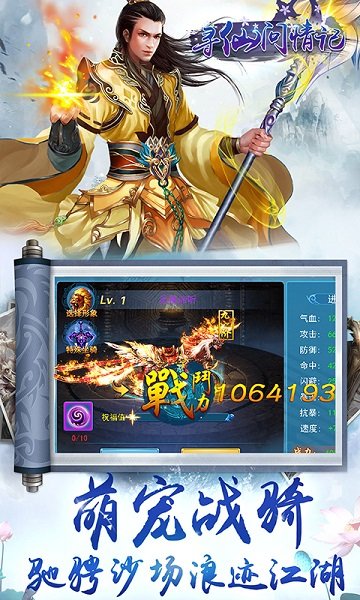 收集宠物伙伴,深度育成培养,众多上古神兽坐骑登场;灵兽相随共战、双龙珠、泣歌剑、净妖莲等神兵法宝炼化便可拥有渡仙法力;强大技能助上仙扫三界,灭血魔,转生而羽化登仙!