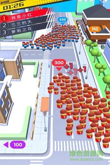 玩家通过操纵火柴人进行移动,吸收更多的人群进入你的队伍,甚至可以将整个街道堵得水泄不通。如果你的人群比对手少,千万不要硬碰硬,记得及时回避。寻找人数少的对手,吞噬他们变得更强,成为压倒性的领袖获取胜利。