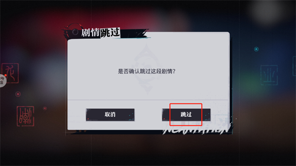 4、此时将会出现一个弹窗提示,这个弹窗提示将会再次确定玩家是否是跳过剧情,以防止玩家误触,点击【跳过】按钮即可。