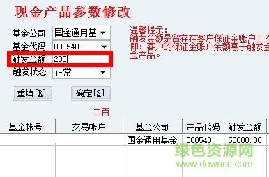 选择基金代码后,可以显示出触发金额,这个200就是为什么你总是只有200的可用资金。