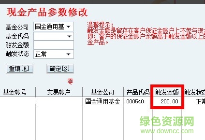 4.选择基金代码后,可以显示出触发金额,这个200就是为什么你总是只有200的可用资金。
