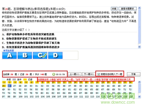 全真模拟考试环境,明确的状态提示,答题后自动跳入下一题,实用的快捷键。